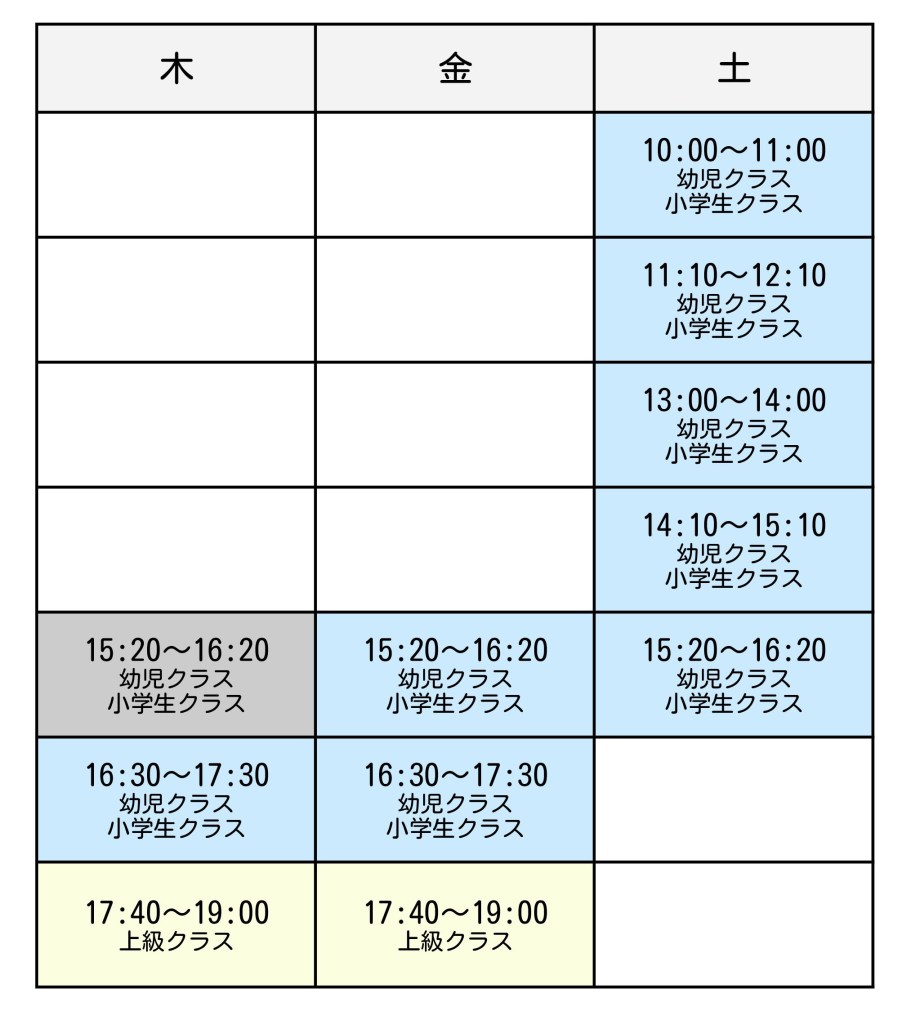 ※現在、土曜日10時のクラスは満席です。